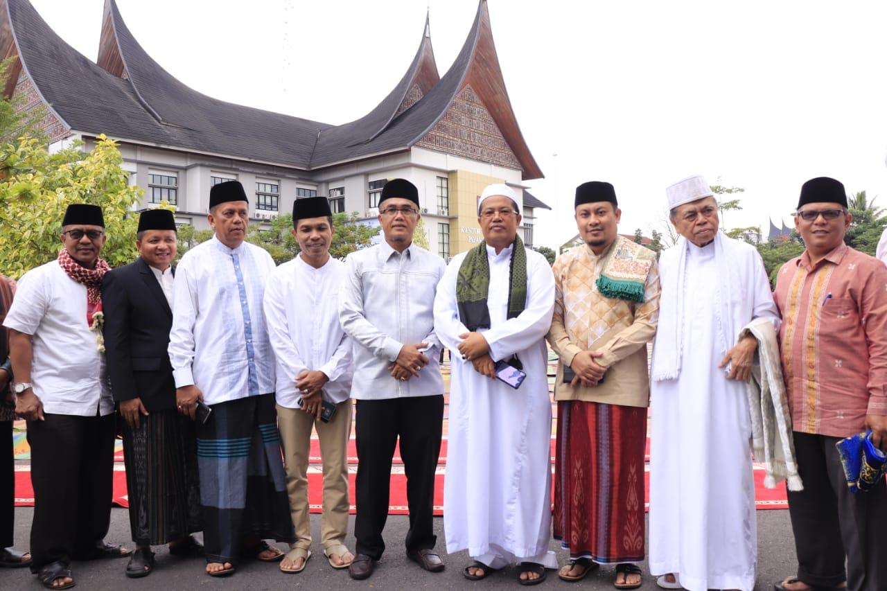 RIBUAN jamaah padati halaman Kantor Balai Kota Payakumbuh ikuti sholat Idul Adha 1444 Hijrah. Dan bertindak sebagai imam dan khatib Ustadz Yusron Lubis, Kamis (29/06/2023).