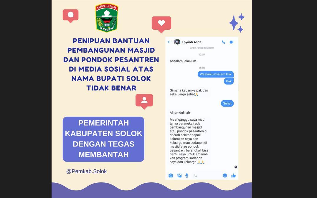 Nama Bupati Solok Dicatut di Facebook, Modus Bantuan Masjid dan Ponpes, Epyardi Asda:Itu Tidak Benar