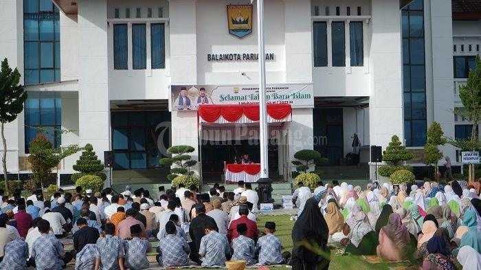 TRIBUNPADANG.COM, PARIAMAN - Memperingati Tahun Baru Islam 1 Muharam 1445 Hijriah, Pemerintah Kota (Pemko) Pariaman mengadakan Tabligh Akbar yang bertempat di Halaman Balaikota Pariaman dengan menghadirkan penceramah Ustaz Ristawardi Dt.Marajo Nan batungkek Ameh, Rabu (19/7/2023).
