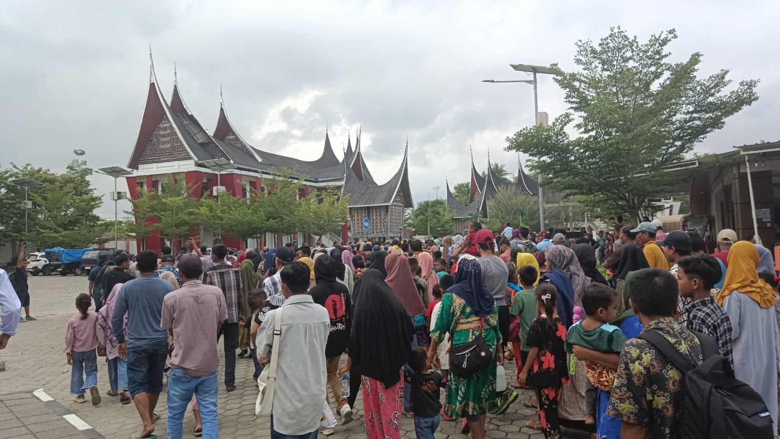 Warga yang berjumlah lebih kurang 1.500 orang berjalan kaki dari Masjid Raya Sumbar menuju lokasi demo, sekira pukul 9.30 WIB.