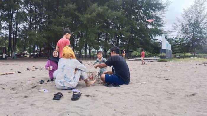 "Pantainya luas, hamparan pasirnya luas, anak-anak senang bermain di sini," ujar salah seorang Warga, Risa (32)