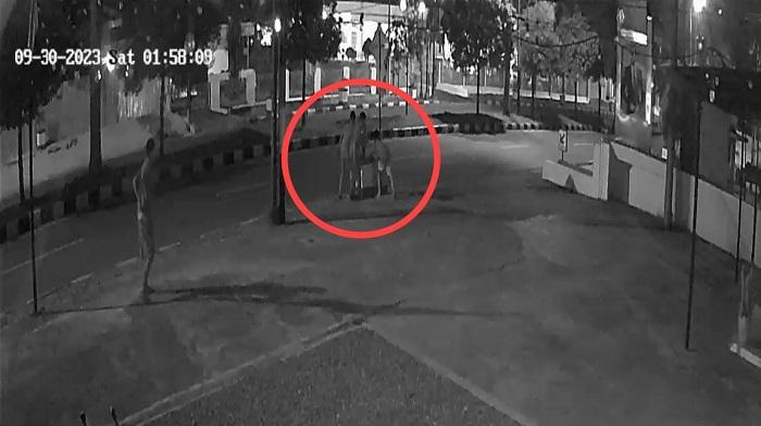 Berdasarkan hasil rekaman kamera CCTV, terlihat empat orang pelaku sedang berjalan bersama-sama di pinggir jalan.