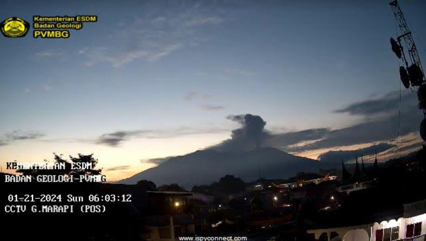 Gunung Marapi Sumatera Barat kembali erupsi, Minggu (21/1/2024) pagi. letusan terjadi pukul 05:13 WIB.