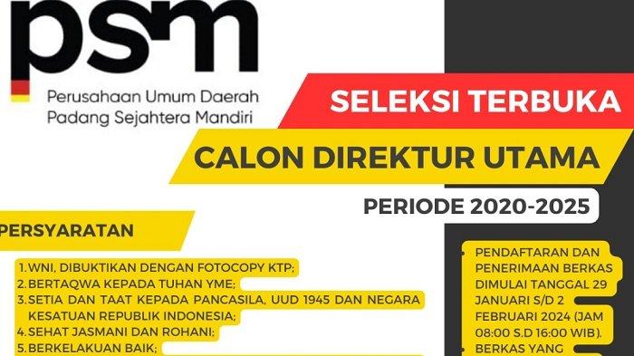 Berikut Persyaratan seleksi terbuka Dirut Perumda PSM Kota Padang