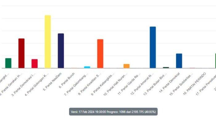 KPU mencatat data masuk 1.096 dari 2.195 tempat pemungutan suara (TPS) hingga Sabtu (17/2/2024) pukul 19.30 WIB.
