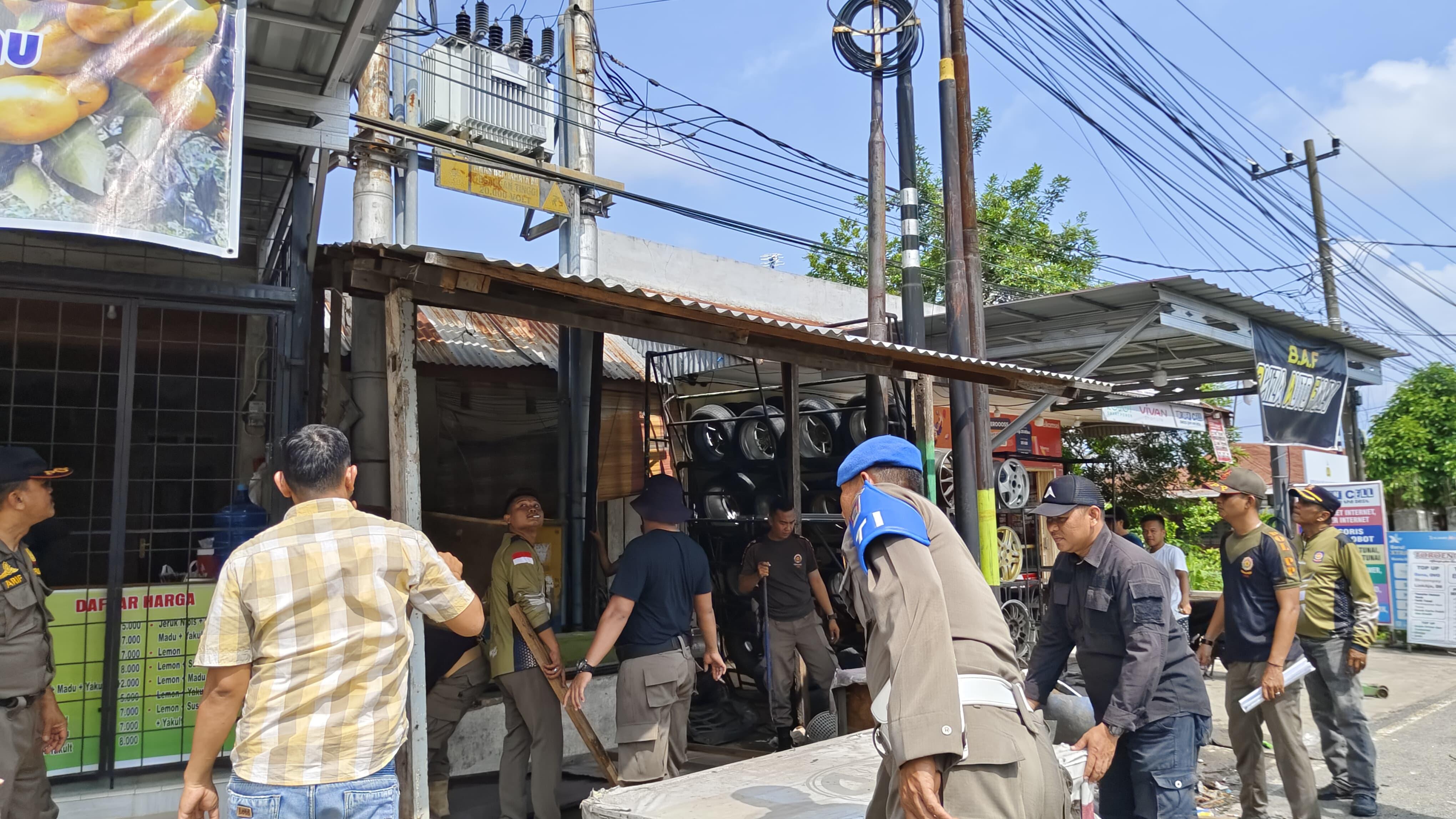 Satpol PP Padang Bongkar Warung Warga yang Berdiri di Bawah Trafo di Jalan Sutomo