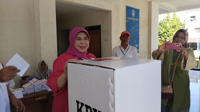 Calon Dewan Perwakilan Daerah (DPD) RI Emma Yohanna unggul di TPS pemilihannya, TPS 005 di STBA Prayoga, Kota Padang.
