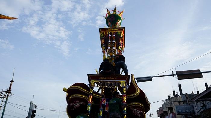 Momen ini menandakan kesiapan Tabuik Subarang setinggi 13 meter untuk diarak ke laut dalam prosesi Hoyak Tabuik.