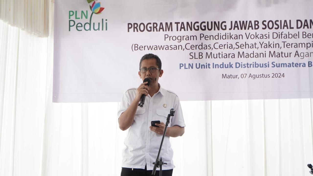 JELANG HUT ke-79 Kemerdekaan RI, PLN Unit Induk Distribusi (UID) Sumatera Barat hadiahkan gedung sekolah baru serta alat keterampilan vokasi dan biaya pelatihan untuk sekolah difabel SLB Mutiara Madani, Matur Agam.