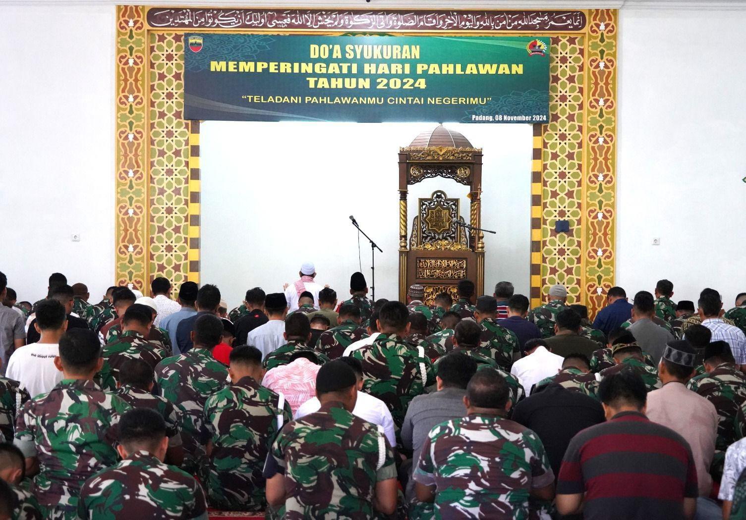 TRIBUNPADANG.COM, PADANG - Korem 032/Wirabraja menggelar Doa Syukur dalam rangka peringatan Hari Pahlawan tanggal 10 November Tahun 2024 yang dilaksanakan di Masjid At-Taqwa Korem 032/Wbr, Jalan Jenderal Sudirman Nomor.29, Kota Padang, Provinsi Sumatera Barat (Sumbar), Jumat (08/11/2024).