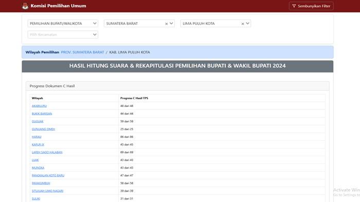 Berikut ini Link Real Count KPU Hasil Pilkada Kabupaten Lima Puluh Kota 2024 : KLIK DISINI