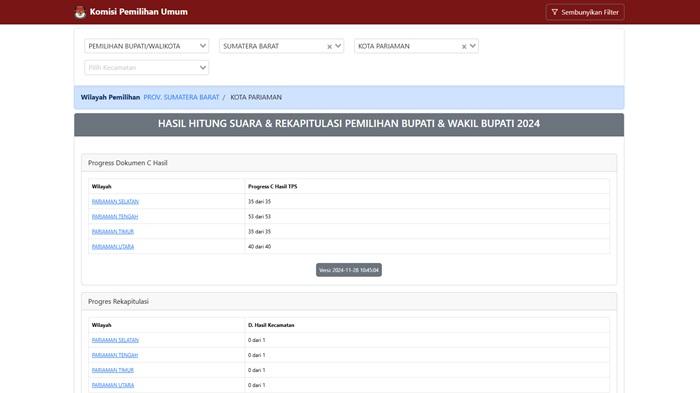 Berikut ini Link Real Count KPU Hasil Pilkada Pariaman 2024 : KLIK DISINI