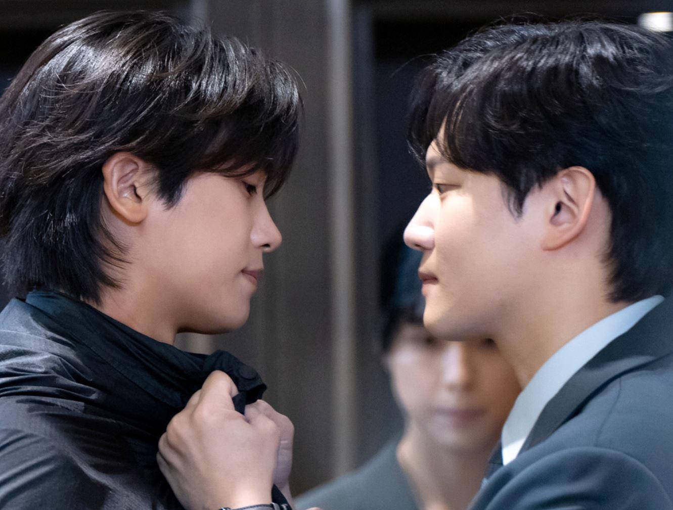 Dalam satu adegan yang sangat menegangkan, Hee Chul mencengkeram kerah baju Dong Joo, sementara Dong Joo tetap tenang, tampaknya berusaha meredakan situasi.