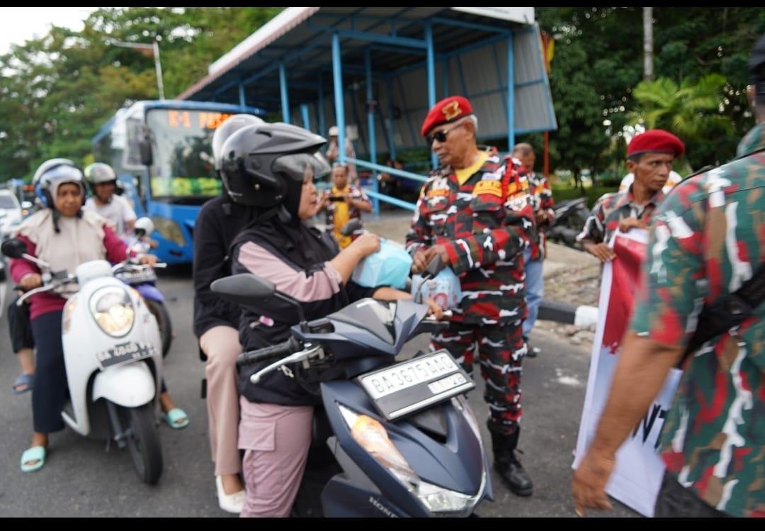 Kegiatan dan aksi damai kali ini diwarnai juga dengan berbagi takjil di sepanjang ruas Jalan Bagindo Aziz Chan Kota Padang, Propinsi Sumbar pada Sabtu (29/3/2025) sore.