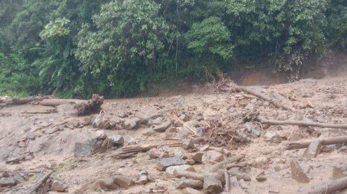 Dalam video yang beredar, tampak material longsor berupa batu, kayu dan lumpur menutup akses jalan dua kecamatan ini.