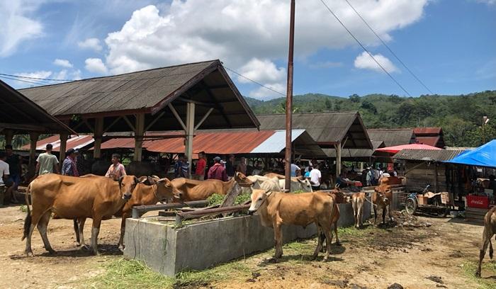 Penjualan sapi di Pasar Ternak Palangki, Nagari Palangki, Kecamatan IV Nagari, Kabupaten Sijunjung, Provinsi Sumatera Barat mulai meningkat usai ..