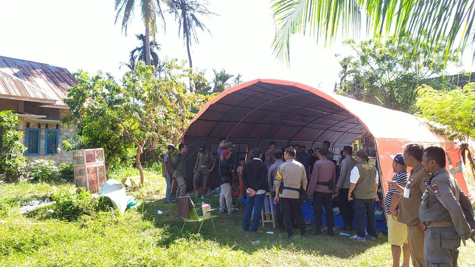 Tenda pertama milik BPBD Kota Padang yang berisi empat kepala keluarga (KK), yaitu keluarga pertama Exsrianto yang terdiri dari enam jiwa, yaitu balita dua orang, satu disabilitas.