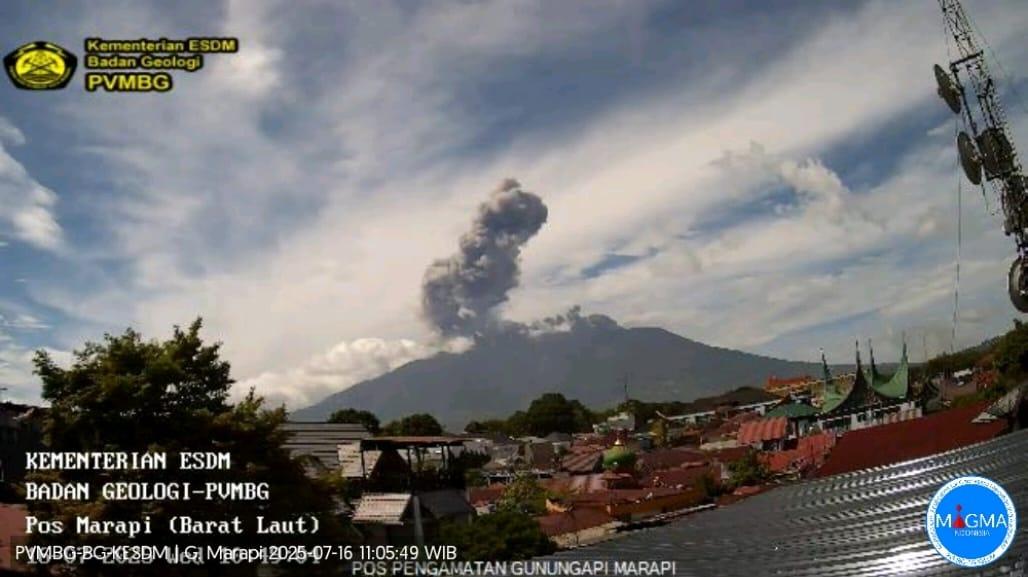 TRIBUNPADANG.COM, BUKITTINGGI - Gunung Marapi di Sumatera Barat (Sumbar), kembali erupsi pada Rabu (16/7/2025) sekitar pukul 10:42 WIB.