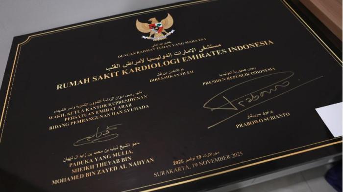 Presiden Republik Indonesia Prabowo Subianto meresmikan Rumah Sakit Kardiologi Emirates–Indonesia (RS KEI) di Kota Solo, Rabu (19/11/2025)