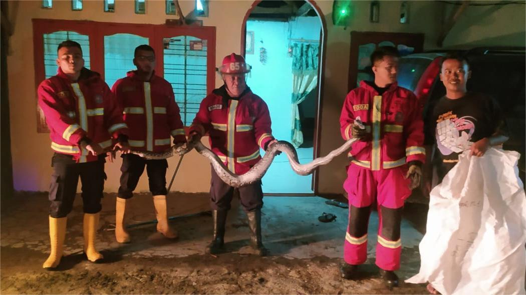 Ular Piton Masuk ke Dapur Rumah Warga di Padang Sarai, Damkar Lakukan Evakuasi pada Dini Hari