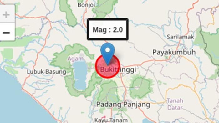 Gempa Magnitudo 2,0 Guncang Bukittinggi Selasa Malam, BMKG Sebut Kedalaman 9 Km