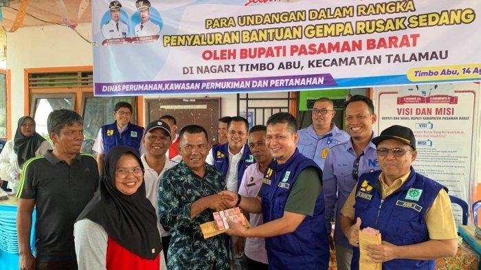 Sekretaris Daerah (Sekda) Pasaman Barat Hendra Putra menyerahkan secara simbolis bantuan untuk 72 kepala keluarga (KK) yang rumahnya mengalami rusak..
