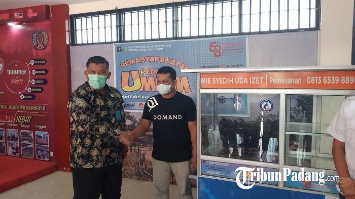 Izet Dapat Gerobak Mie, Kakanwil Sumbar Bantu Pelaku UMKM pada Hari Bakti Pemasyarakatan ke-58