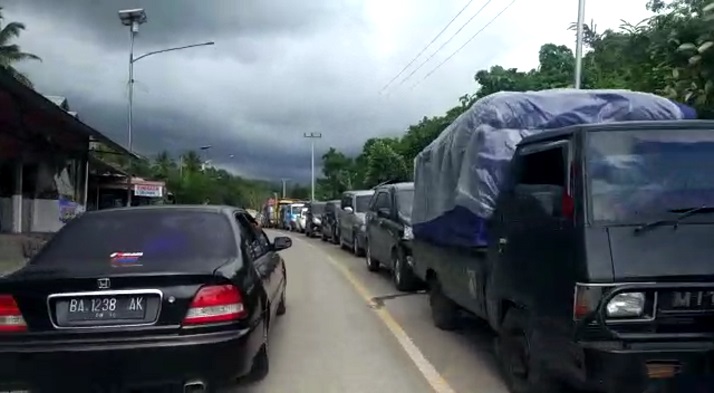 Macet panjang terjadi di jembatan darurat Jalan Padang - Bukittinggi tepatnya di Kelok Pinyaram, Kabupaten Padang Pariaman, Sumatera Barat (Sumbar).