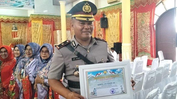 Wakapolres Pariaman, Kompol Jon Hendri, menerima penghargaan atas inisiatif kemanusiaan posko donor darah yang ia inisiasi hampir satu tahun terakhir