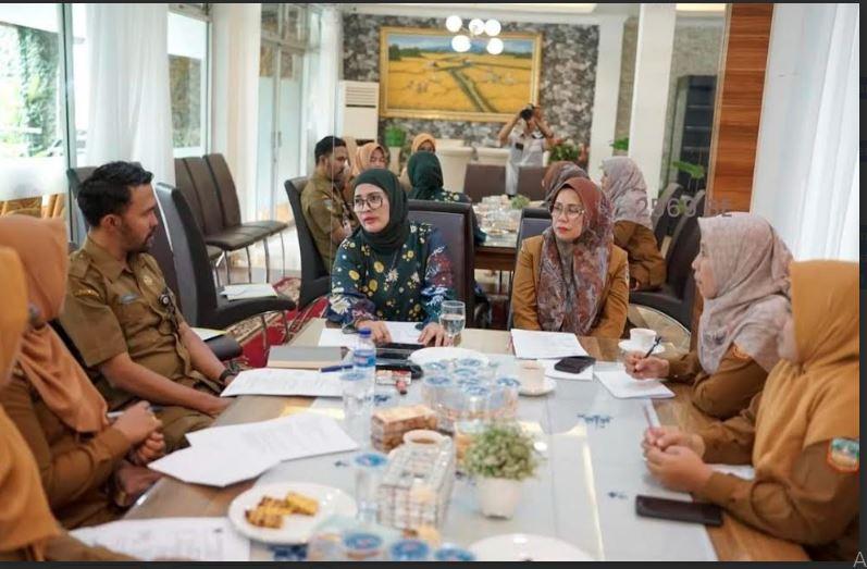 Ketua TP-PKK Kabupaten Solok Selatan sekaligus Ketua Tim Pembina Posyandu, Erniati Khairunas, menerima kunjungan dari jajaran Dinas Sosial Pemberdayaa