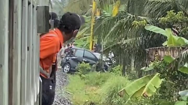 Peristiwa kecelakaan ini viral di media sosial yang mengakibatkan satu unit mobil warna hitam ringsek tertabrak kereta api.