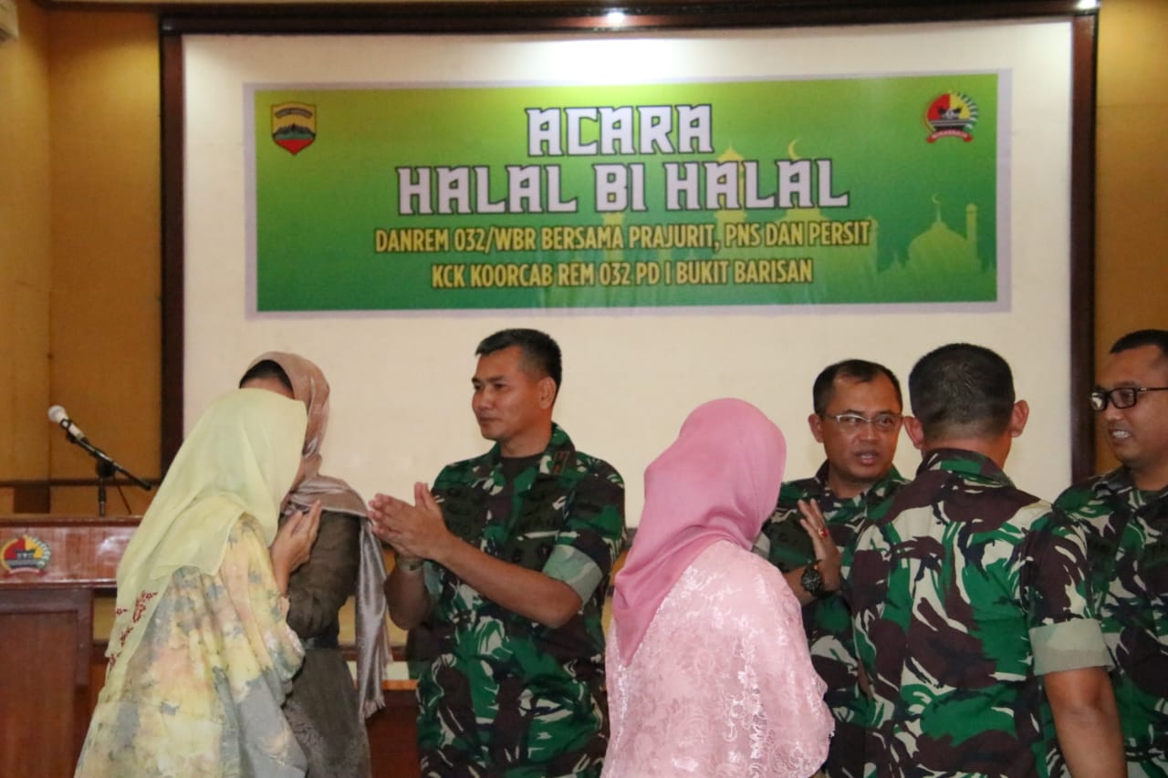 Jajaran Korem 032/Wirabraja menggelar Halal bihalal dalam rangka hari raya Idul Fitri guna memperat tali silaturahmi dan saling