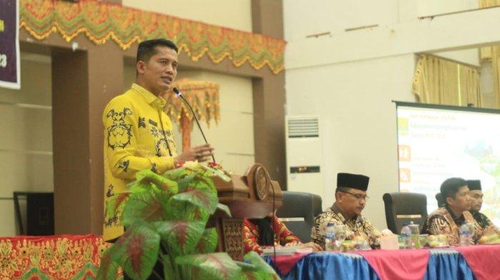 Bupati Padang Pariaman Suhatri Bur, serahkan Penyaluran zakat dalam Program Ramadan Bahagia secara simbolis, Jumat (7/4/2023)
