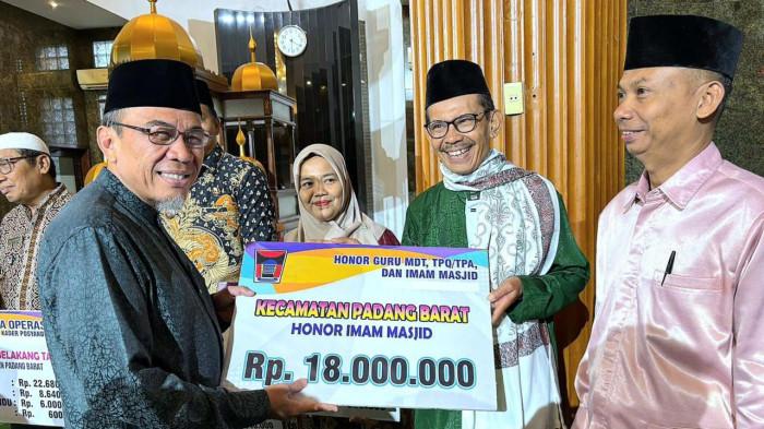 Wawako Padang Maigus Nasir menyerahkan secara simbolis dana operasional triwulan III tahun 2025 di Kecamatan Padang Barat, Kamis (23/10/2025).