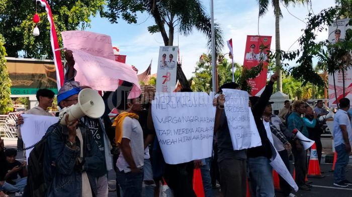 Puluhan orang yang juga mengaku berasal dari Air Bangis turut menggelar aksi unjuk rasa di depan kantor Gubernur Sumatera Barat, Rabu (2/8/2023).