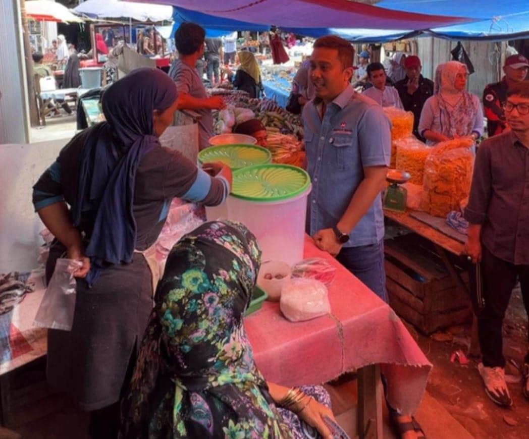 Calon Gubernur Sumbar, Mahyeldi kunjungi Pasar Batang Kapas, Kabupaten Pesisir Selatan, Senin (14/10/2024).