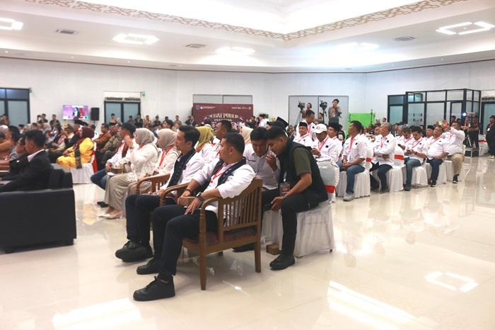 Paslon Riyanda-Jeffri mengikuti debat perdana pada Pilkada 2024 di Aula BDTBT Sawahlunto, Rabu (30/10/2024) malam.